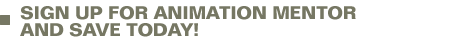 Are you serious about becoming an animator? Have you been thinking about joining Animation Mentor? What are you waiting for? Now is the perfect time! Sign up for Winter Term today to lock in the current low tuition rate as it will increase starting January 1, 2007. All you have to do is apply and pay a $500 deposit by October 25, 2006 to secure the current low rate for the entire 18-month program! This promotion is only applicable for Winter Term 2007 which starts January 8, 2007. Sign up today and save!