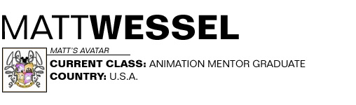I know in animation we are supposed to avoid cliché’s, but this one has been my dream for a loooong time. My dream job is to be a character animator at Pixar. When I visited the studio, I felt like I was at home. The people are so great and the culture there puts story above all else. I want to be an animator so I can tell stories. Pixar seems to have the same goal, so that's where I want to be. That said, I just want to animate, Give me a story and a character at ANY studio and you have one happy Matt!